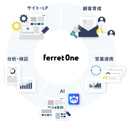 マーケティングの課題は企業やチームによって様々です。ferret Oneは、課題に合わせて貴社に不足している要素を提供し、マーケティング施策の実行を促すサービスです。